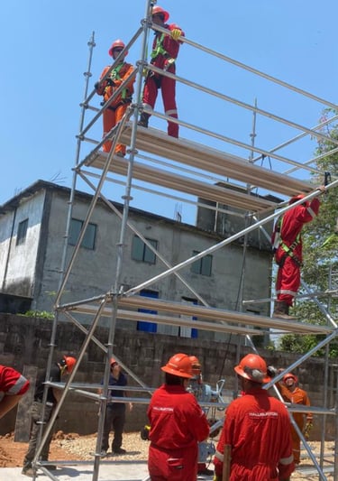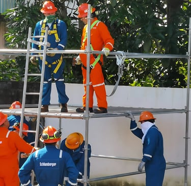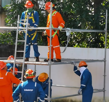 Brindamos capacitación especializada en trabajos en alturas, enfocada en proteger la integridad del personal que realiza labores por encima de los 1.80 metros, como mantenimiento industrial, estructuras metálicas, plataformas petroleras o torres.