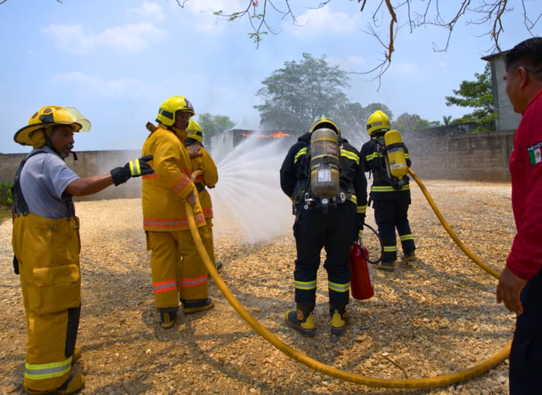 Simulaciones realistas que incluyen el uso de humo y atmósferas controladas, recreando condiciones reales de baja visibilidad y presencia de gases peligrosos. Cumplimos con los lineamientos normativos vigentes, asegurando que tu equipo esté capacitado y preparado para actuar ante una emergencia
